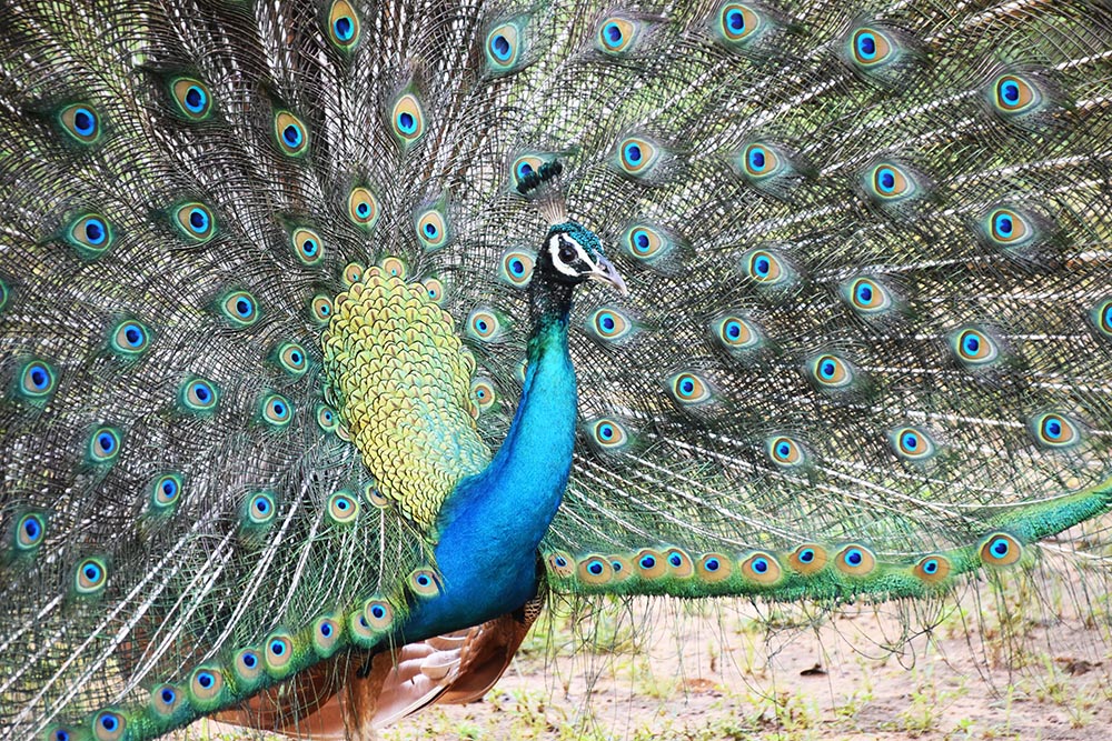 There are 215 species of birds at Yala of which seven, namely Grey Hornbill, Sri Lanka Jungle Fowl, Sri Lanka Wood Pigeon, Crimson-Fronted Barbet, Black-Capped Bulbul, Blue-Tailed Bee-Eater and Brown-Capped Babbler are endemic to Sri Lanka. The biggest bird found at Yala is the magnificent Pavo Cristatus or Peacock which is endemic to South Asia.